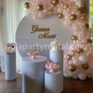 – 3 Round pedestals ( cover spandex color pedestals)