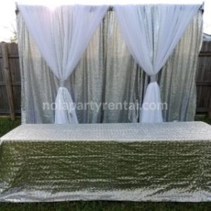 – 2 GLITZ SEQUIN Silver drapes 10ft×116 wide