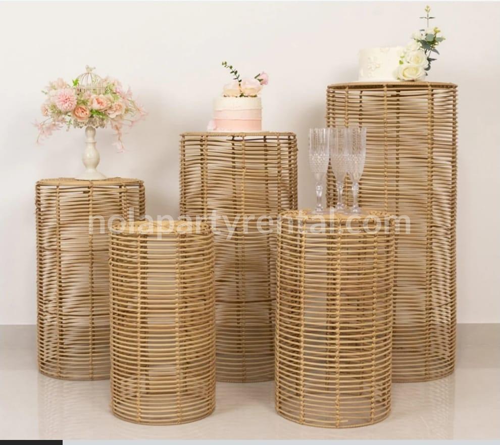 Set of 5 Natural Woven Rattan Pedestal