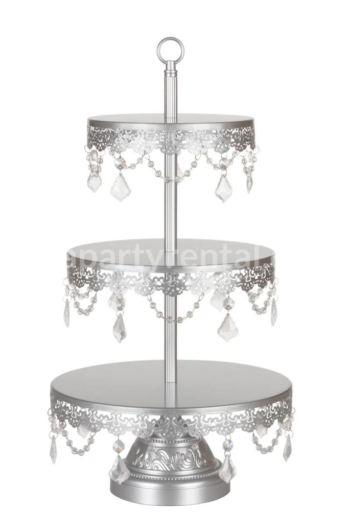3 Tier Crystal Draped Dessert Cup Cake Stand