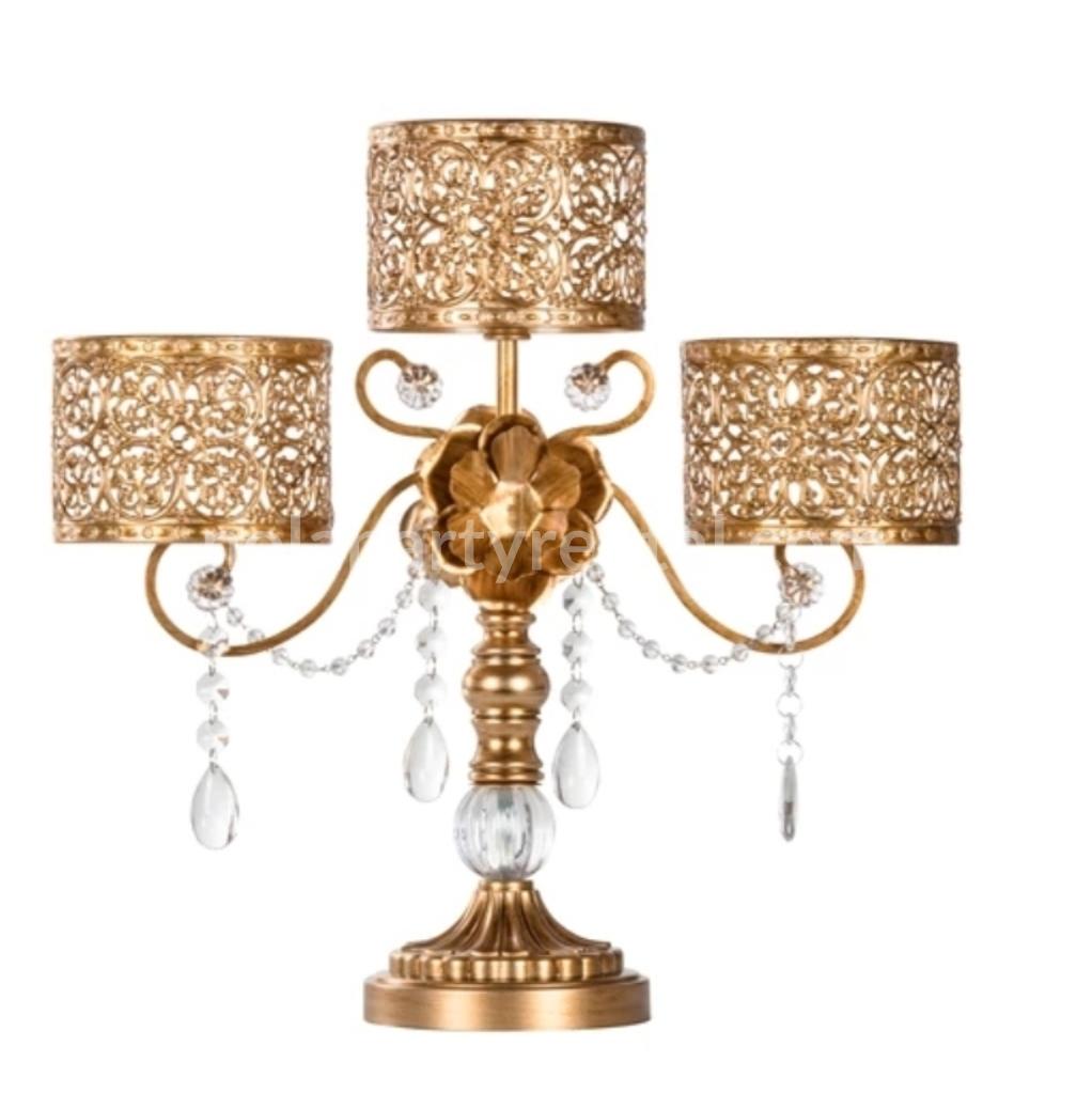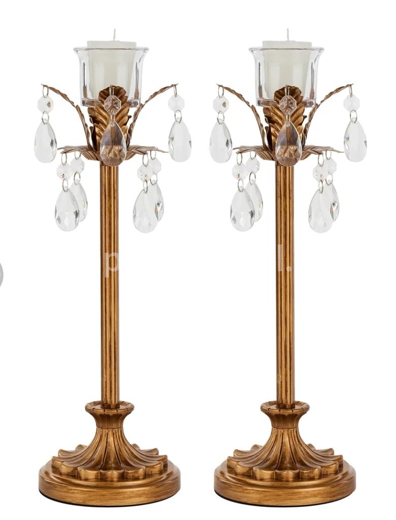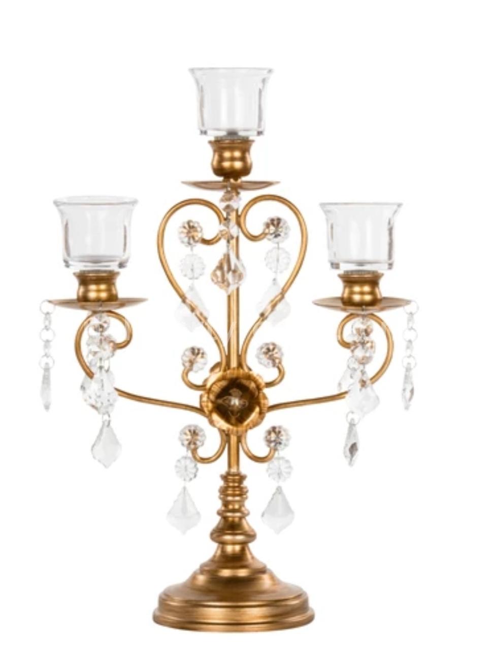 15 Inch Crystal Draped Antique glass Candle Holder gold color