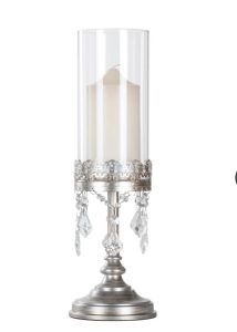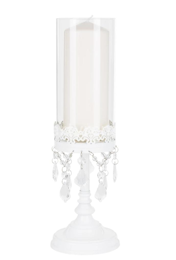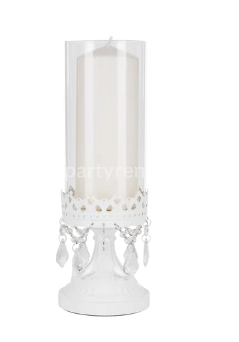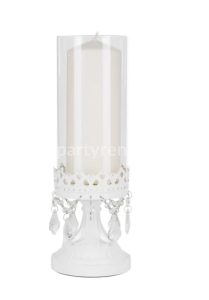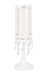 12.75″ Crystal Draped Rustic Glass Candle Holder white color