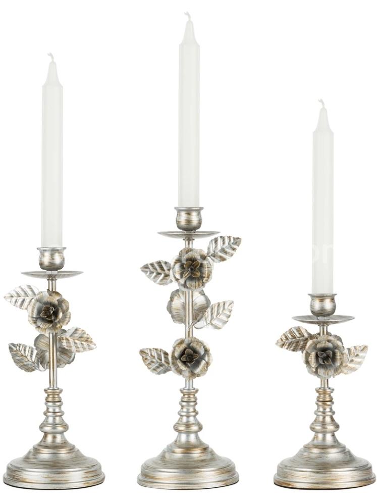 Vintage Floral 3 piece Metal Candelabra