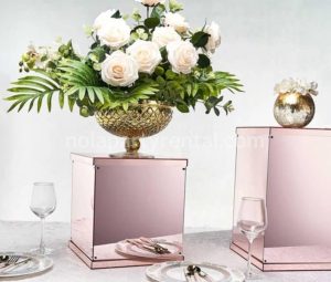 32″ Rose Gold/Blush Mirrored Acrylic Pedestal Risers – Display Boxes with Interchangeable Lid and Base