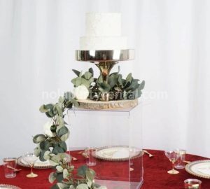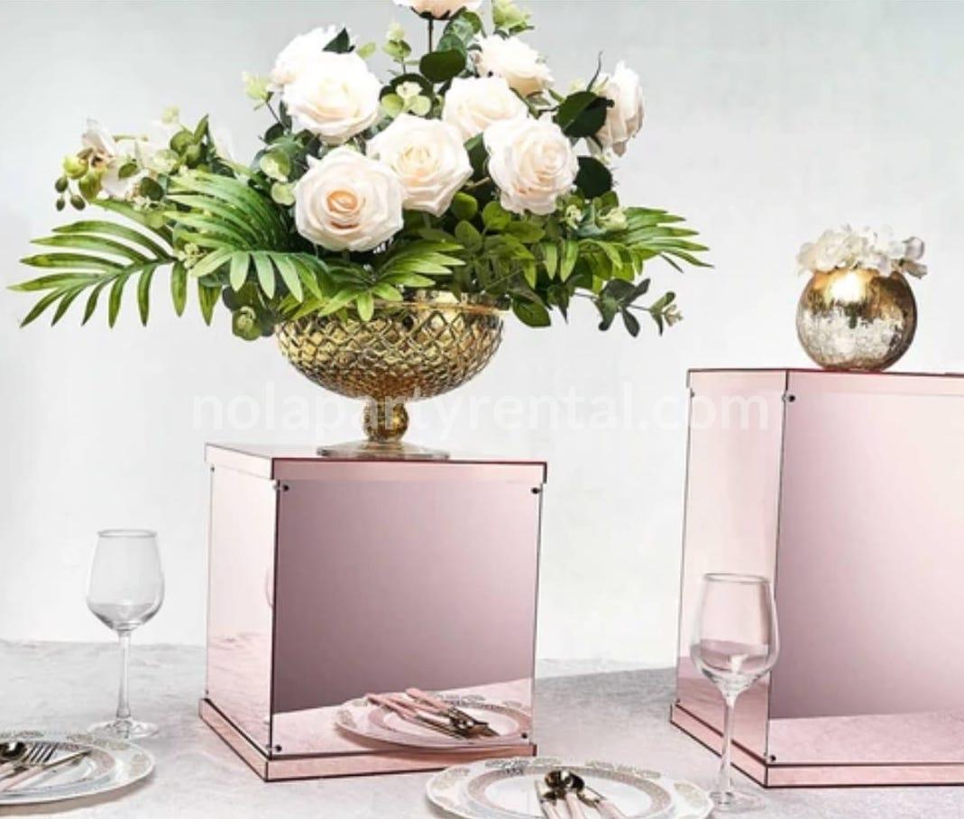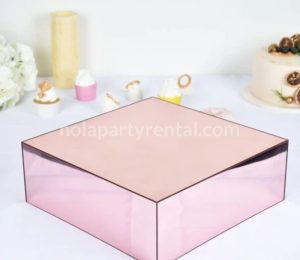 14″x14″ Acrylic Cake Box Stand, Mirror Finish Display Box Pedestal Riser with Hollow Bottom – Rose Gold/Blush