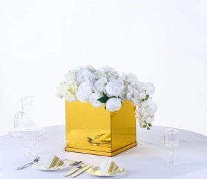 32″ Gold Mirror Finish Acrylic Pedestal Risers – Display Boxes with Interchangeable Lid and Base
