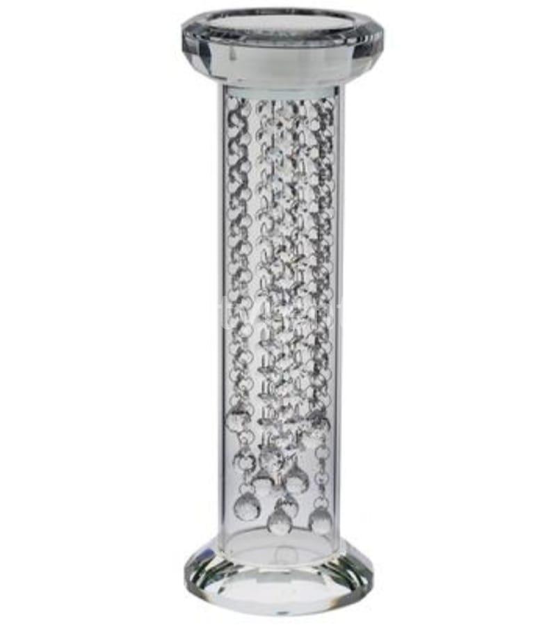 Gem Cut Premium Glass Crystal Pillar vase Candle Holder Centerpiece with 33 Crystal Chains