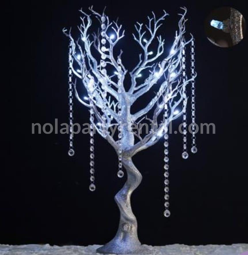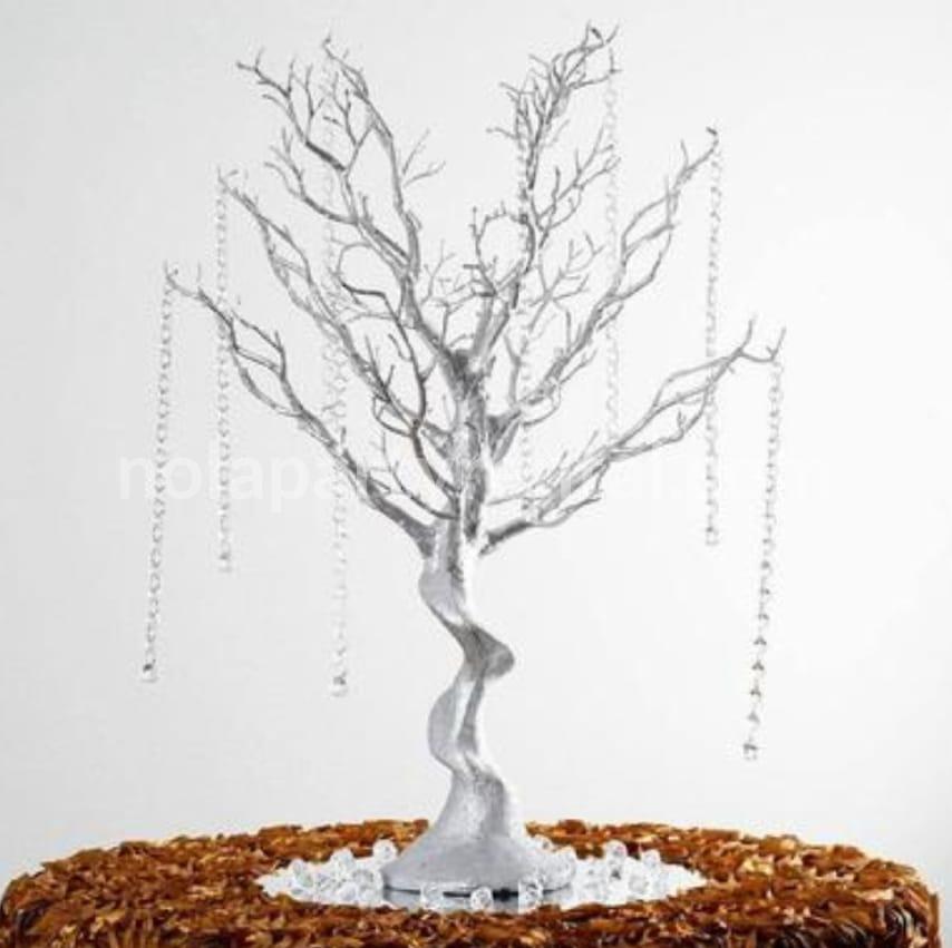 30″ Shiny Manzanita Silver Centerpiece Table top Decoration Tree + 8 pcs