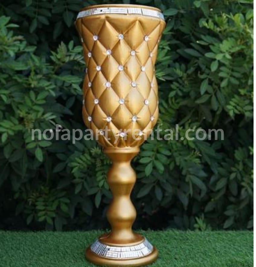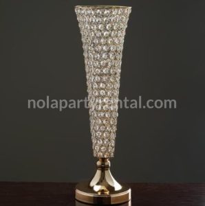 2 Set 22″ Tall Gold Beaded Crystals Trumpet Vase Centerpiece