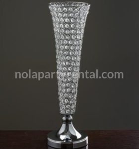 2 Set 22″ Tall Silver Beaded Crystals Trumpet Vase Centerpiece