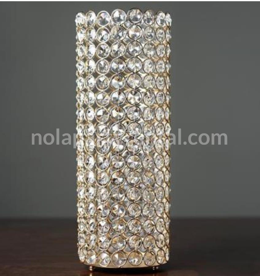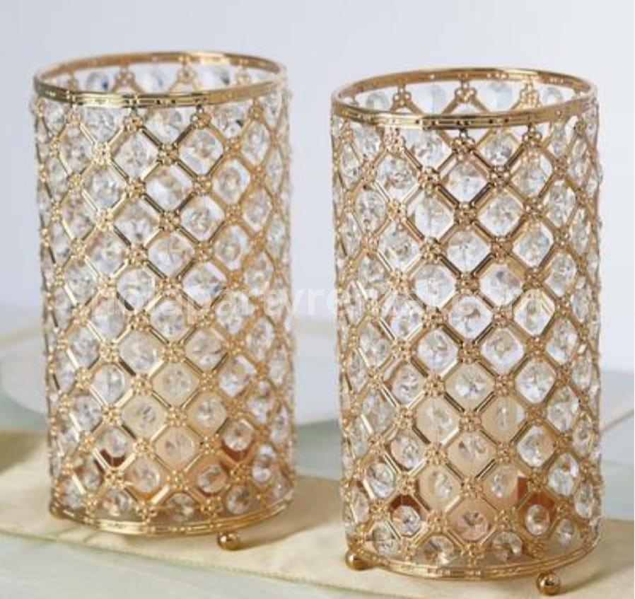 Metallic Gold Crystal Beaded Pillar Votive Candle Holder Wedding Centerpiece