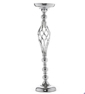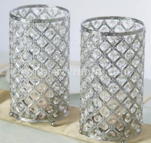 Metallic Silver Crystal Beaded Pillar Votive Candle Holder Wedding Centerpiece