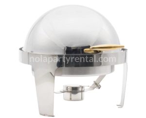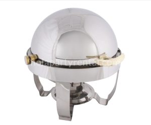 Choice Supreme 6.5 Qt. Round Stainless Steel Roll Top Chafer whith Chrome Trim