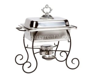 Choice 4 Qt. Half size Chafer Set with Black wrougth iron Stand and Classic Lid Handle