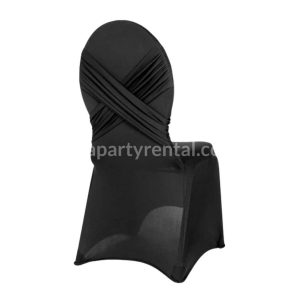 Cross Back Stretch Spandex Banquet Chair Cover – Black