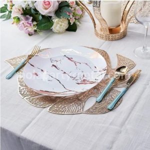 6 Pack / 18″ Gold Monstera Leaf Placemat Metallic Dining Table Mats