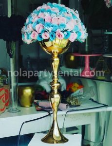 5 Arm 27″ Crystal Gold Metal Horizontal Table Standing Candela Candle Holder