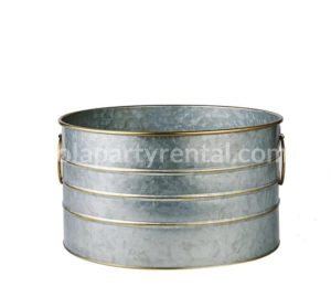 10″ Rustic Galvanized Metal Buckets Round Party Beverage tub with gold Handles
