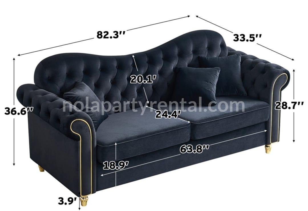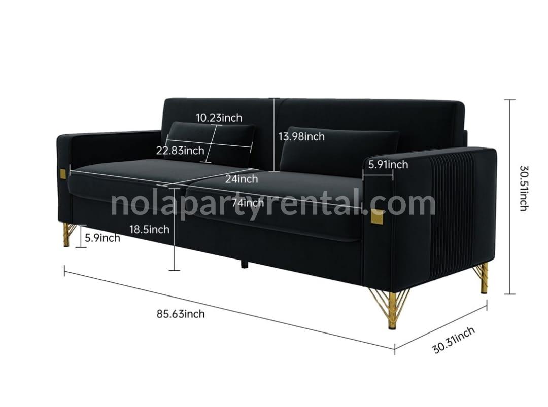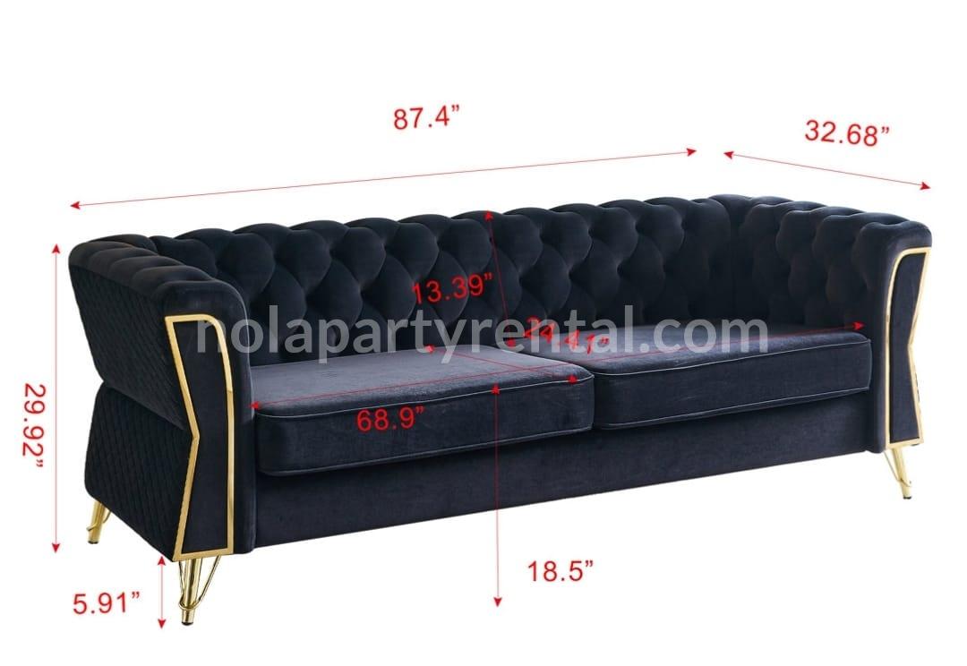 82" Velvet Luxury Lounge Sofa Black Color - Code A0095
