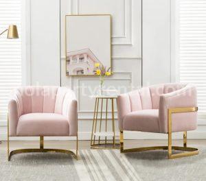 Romy 28.50" Wide Tufted Barrel Chair - Pink Velvet - Code A0056