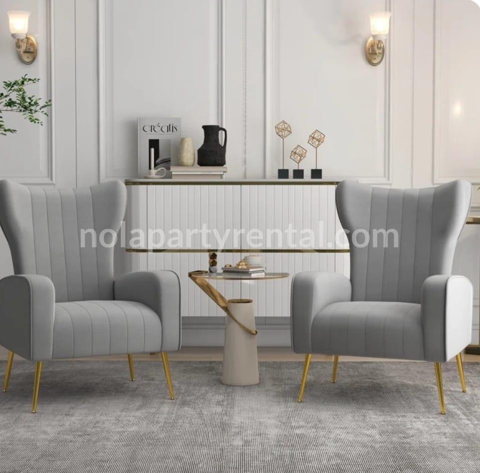 26.35" Wide Velvet Wingback Chair - Grey Velvet - Code A0049