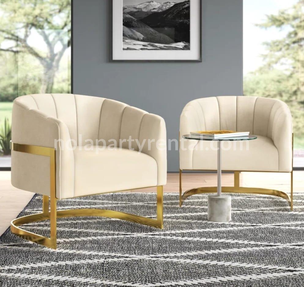 Romy 28.50" Wide Tufted Barrel Chair - Beige Velvet - Code A0050