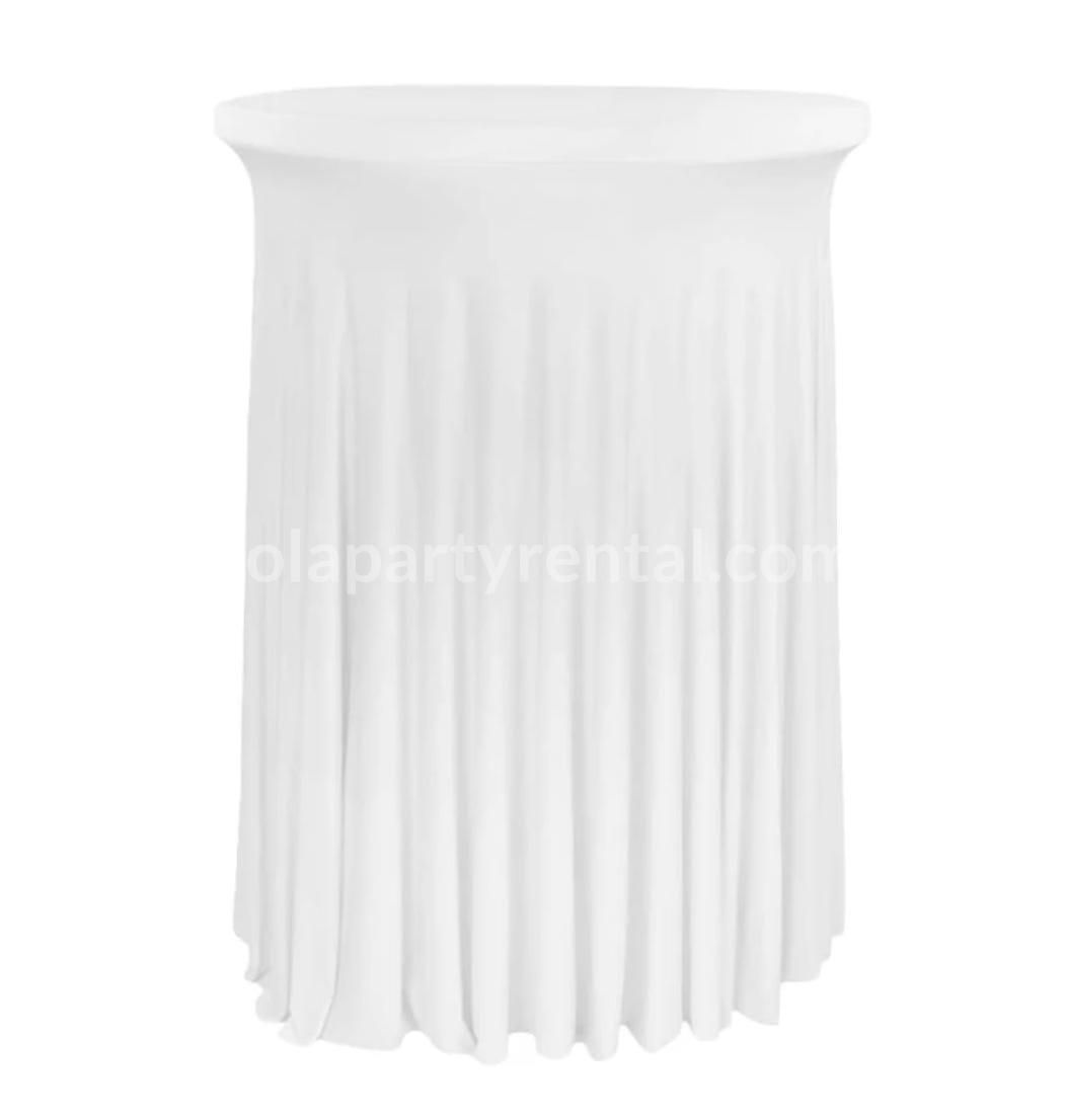 Wavy Spandex Cocktail Table Cover 30″-32″ Round – White