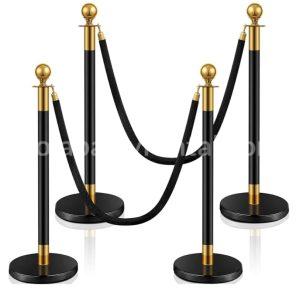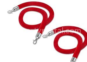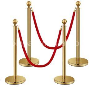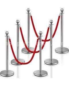 Set 4 Poles 2 Velvet Ropes - Red and Silver