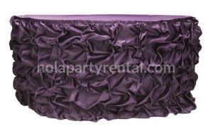 14ft Gathered Lamour Satin Table Skirt – Eggplant/Plum