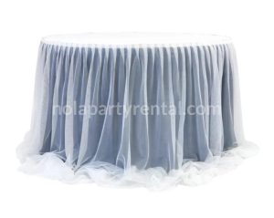 Chiffon Tulle Table Skirt Extra Long 57″ x 17ft – Navy Blue & White