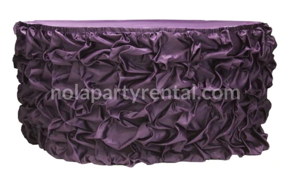 14ft Gathered Lamour Satin Table Skirt – Eggplant/Plum