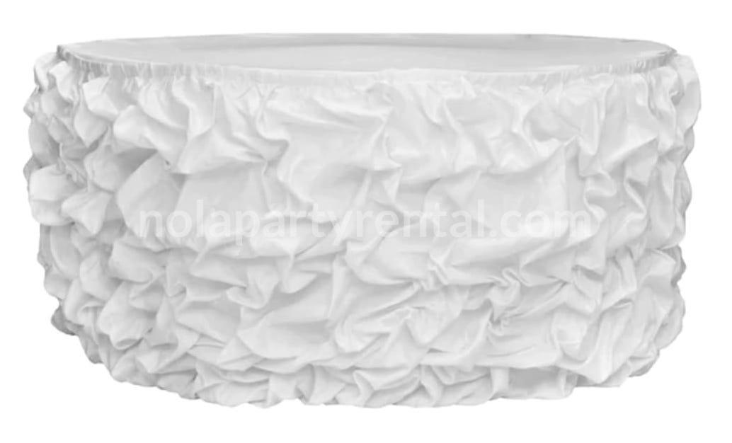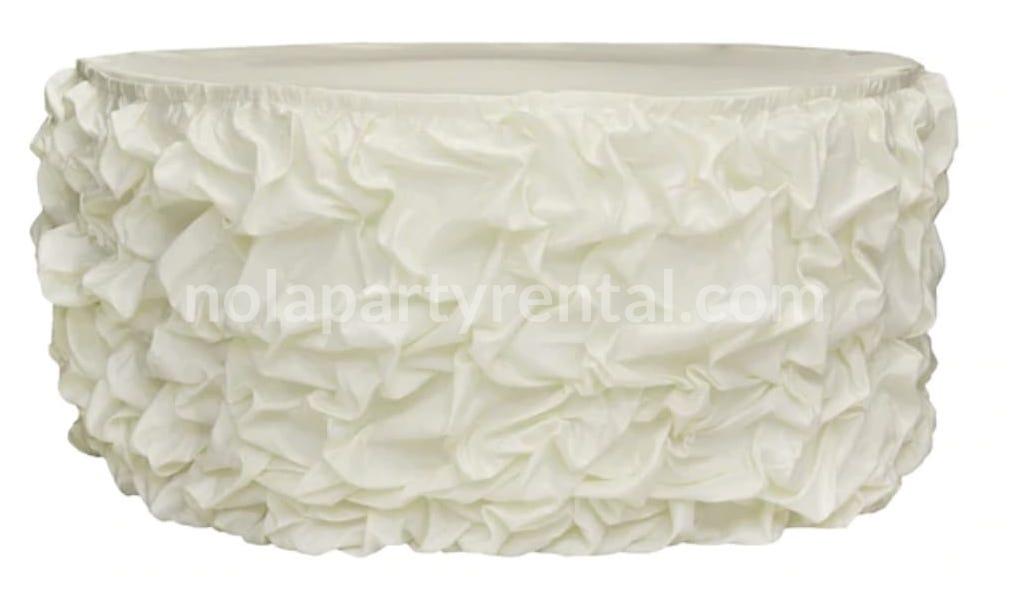14ft Gathered Lamour Satin Table Skirt – Ivory