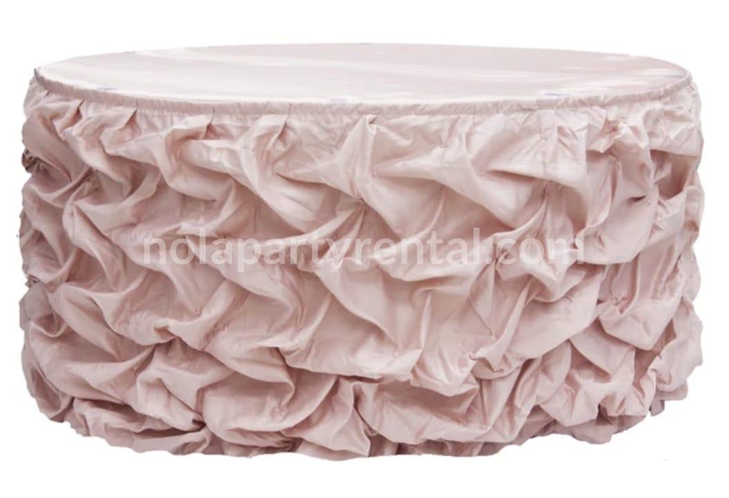 14ft Gathered Lamour Satin Table Skirt – Blush/Rose Gold
