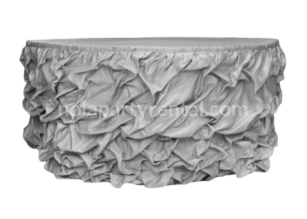 21ft Gathered Lamour Satin Table Skirt – Gray/Silver
