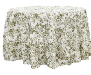 French Toile 132 inc Round Tablecloth – Olive Green color