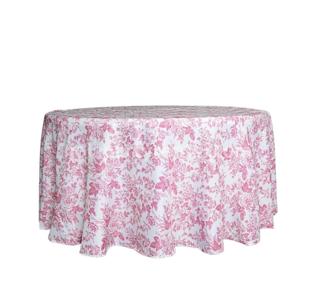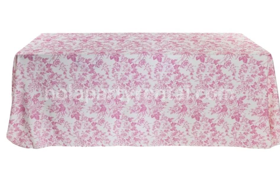 French Toile 90″x156″ Rectangular Tablecloth – Pink color