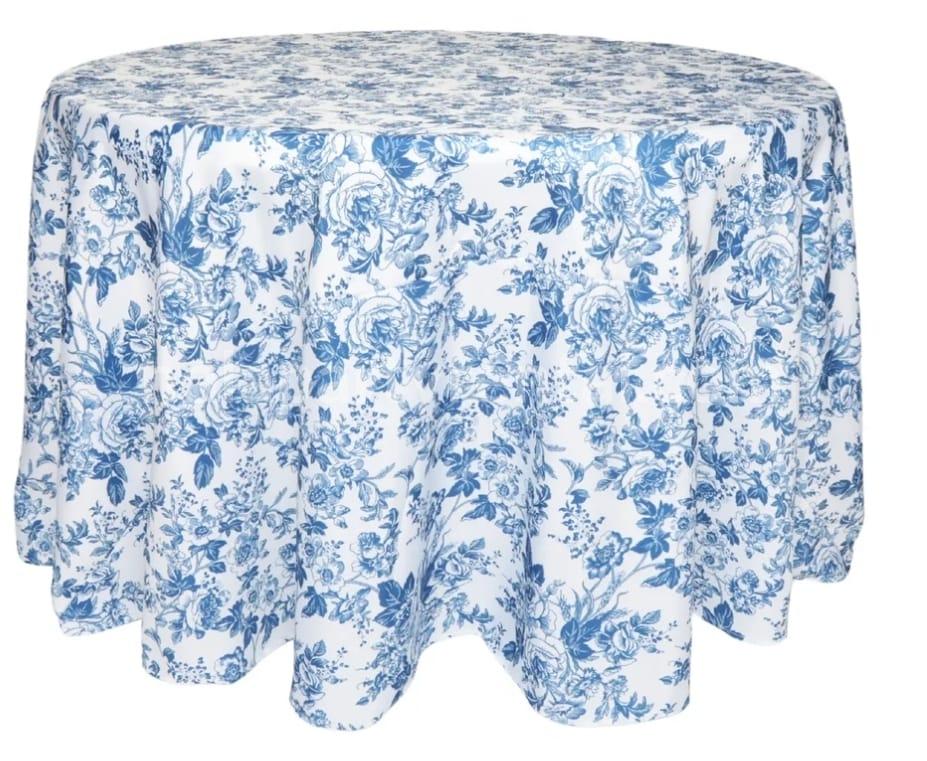 French Toile 132 inc Round Tablecloth – Dark Blue color