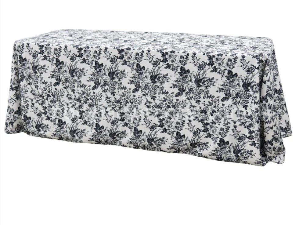 French Toile 90″x156″ Rectangular Tablecloth – Black color